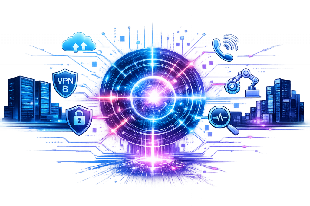 La primera línea de protección de una infraestructura tecnológica es su capacidad para controlar el acceso a redes, sistemas y espacios físicos. La seguridad perimetral integra mecanismos que permiten proteger los entornos tecnológicos frente a accesos no autorizados y eventos externos que puedan comprometer la operación. Estas capacidades incluyen: